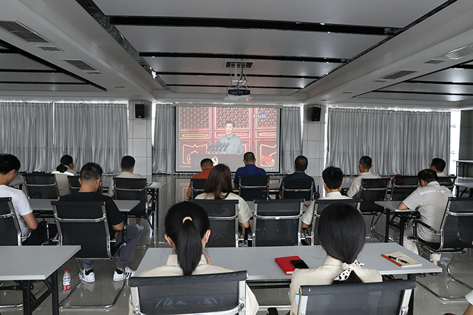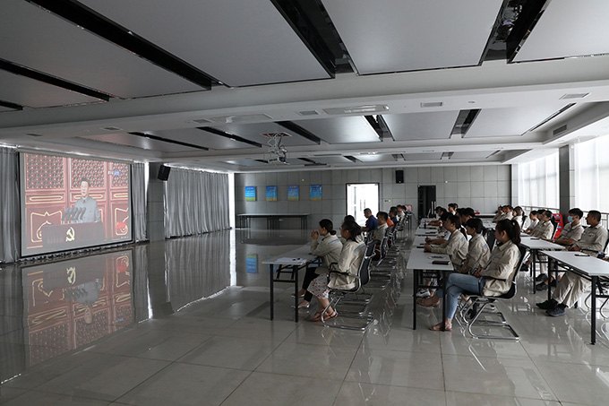 五楼大会议室内,全体党员佩戴党徽、团员携带团徽,满怀激情收看直播。“我们实现了第一个百年奋斗目标,在中华大地上全面建成了小康社会。”“中华民族迎来了从站起来、富起来到强起来的伟大飞跃,实现中华民族伟大复兴进入了不可逆转的历史进程!”习近平总书记代表党和人民作出的庄严宣告,慷慨激昂,振奋人心!