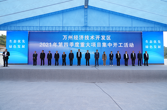 金秋十月,收获连连!10月17日,重庆万州经开区2021年第四季度11个重大产业项目、重大基础设施项目集中开工活动,分别在万州经开区新田园、高峰园举行。重庆市委常委、万州区委书记莫恭明宣布项目开工,区委副书记、区政府区长、万州经开区党工委书记聂红焰致辞,区人大常委会主任贺恩友,区政协主席罗能平,区领导刘伟、涂立军、颜森,万州经开区领导曾斌、李忠云、骆高燕出席。万州经开区党工委副书记、管委会主任蒲承明主持。