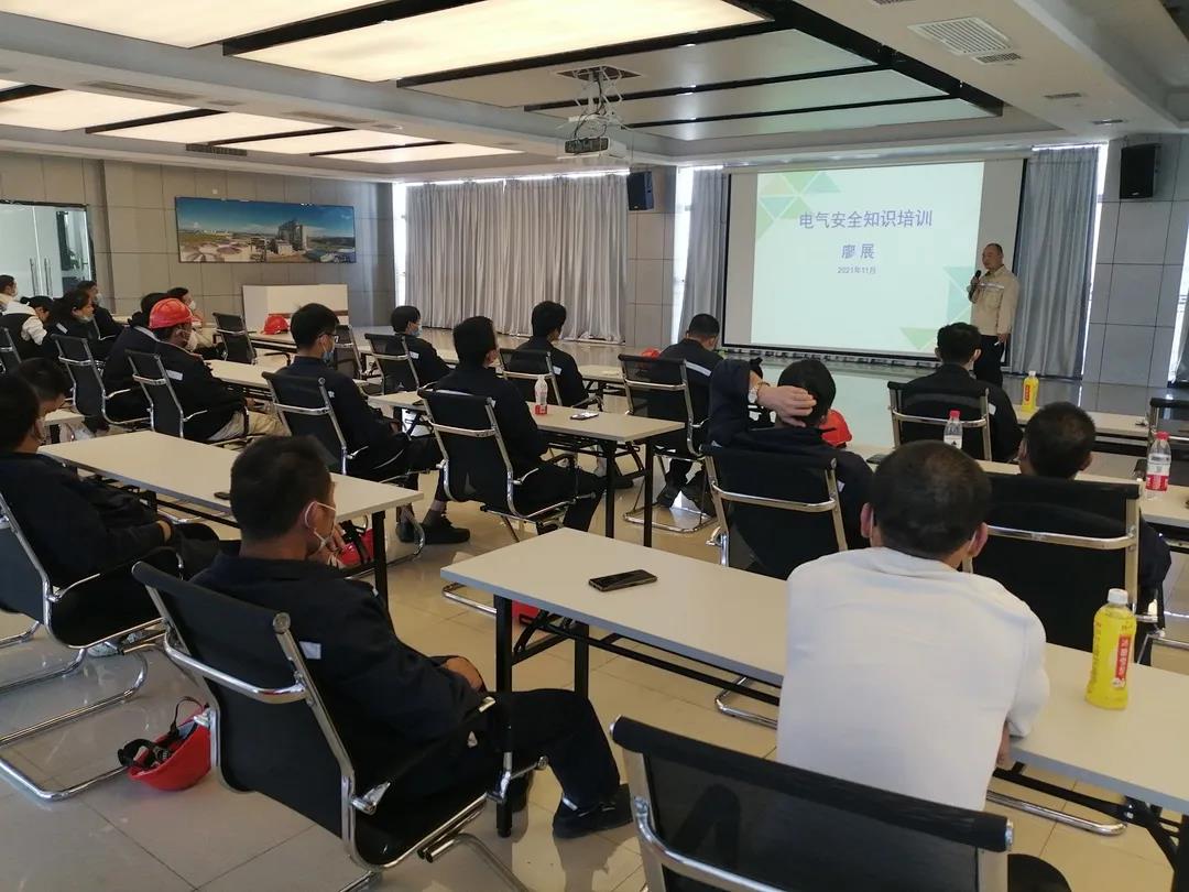 电气安全培训由机电仪车间主任廖展主讲。廖主任以理论结合实践,从电的产生、类型等基础知识讲起,阐述了触电的方式和危害、电气火灾的处置措施、触电现场急救等专业知识。