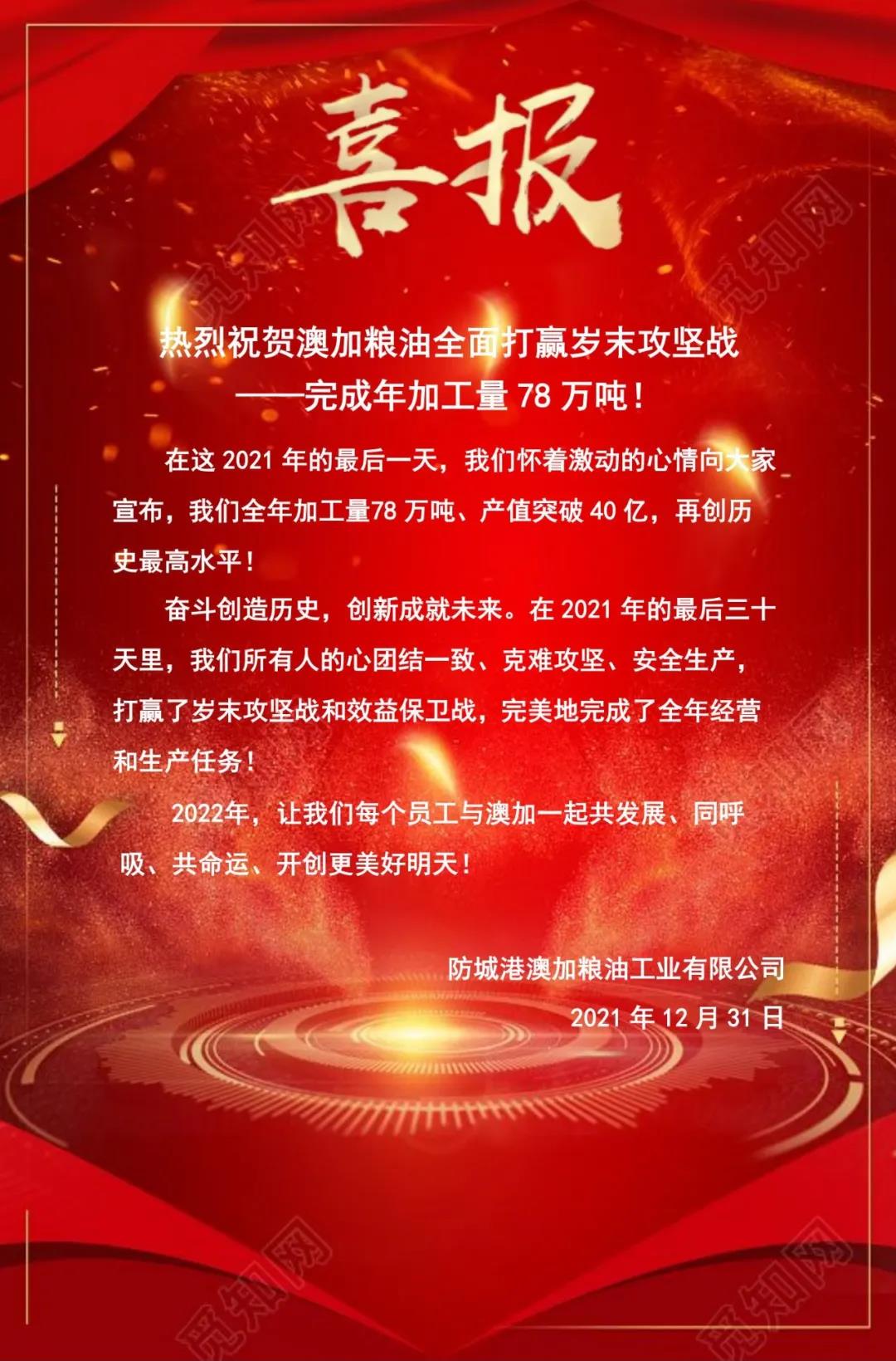 【喜报】热烈祝贺澳加粮油全面打赢岁末攻坚战——完成年加工量78万吨!