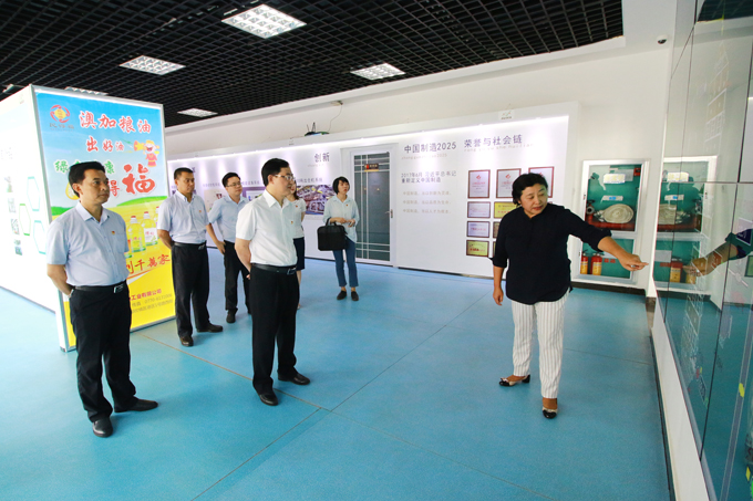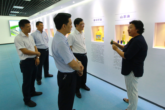袁国华部长首先参观了企业展厅,听取了张慧总经理关于澳加粮油的发展历程、生产经营状况、科技创新成果,山茶油产业项目推进情况、产业扶贫的汇报。听取汇报后,袁部长指出:企业要更加重视人才队伍建设,不断加大科技创新力度,加快推进供给侧结构性改革步伐,积极参与产业扶贫和乡村振兴战略,为防城港精准扶贫工作和经济社会发展作出贡献。